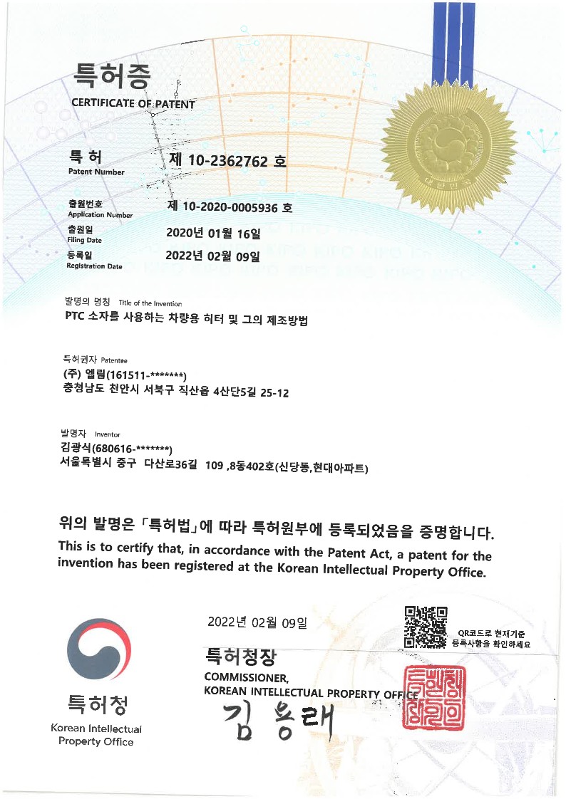 특허 제10-2362762호 페이지 정보 작성자 (주)엘림 작성일 24-03-29 17:21 조회 1,814회 댓글 0건 본문 이전글특허 제 10-2306514호 다음글특허 제 10-2259559호 목록